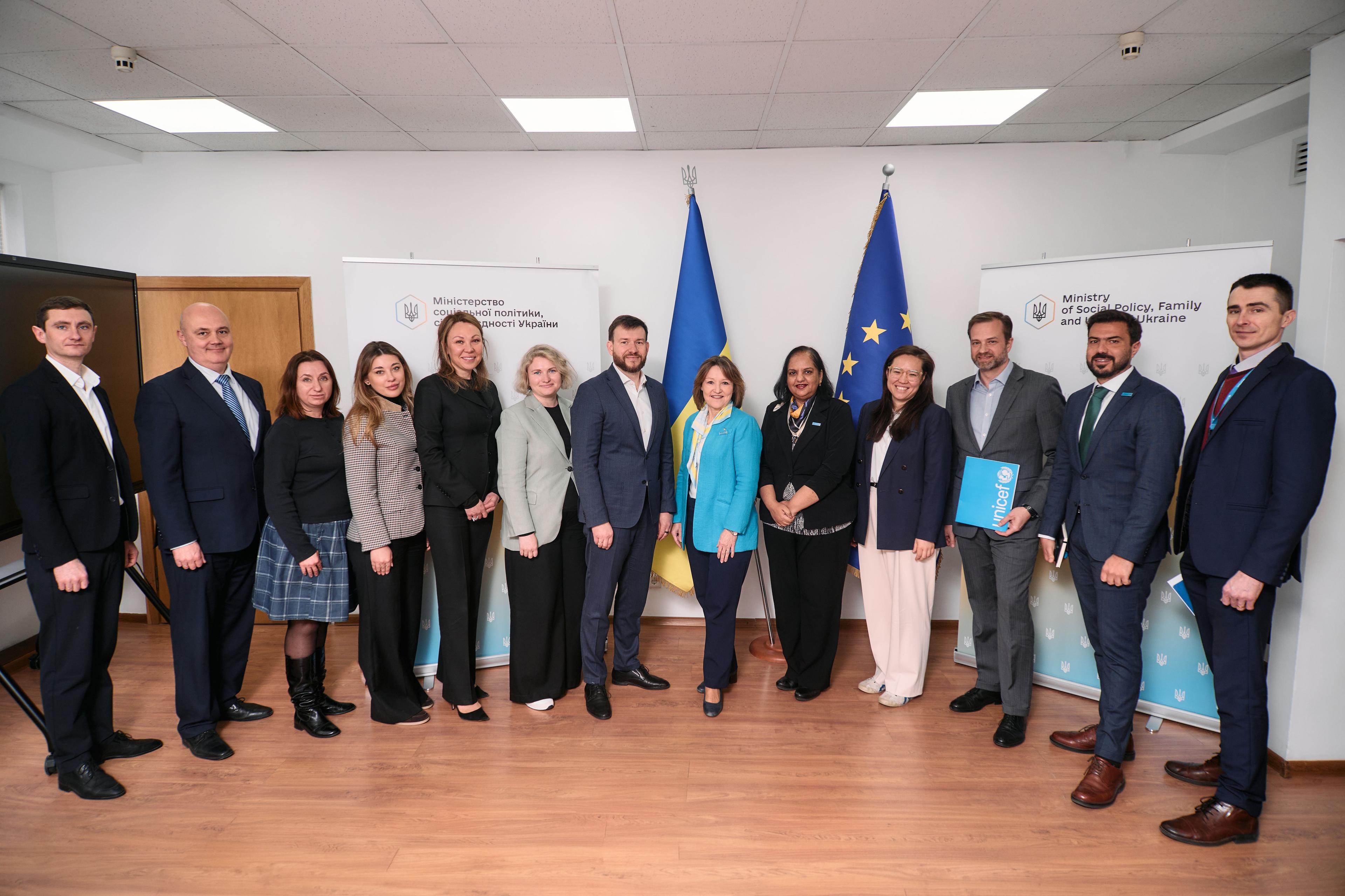 Зі свого боку Анн-Клер Дюфей підтвердила готовність ЮНІСЕФ посилювати координацію міжнародної допомоги, зокрема в межах робочої групи донорів Social Protection Working Group. Вона також відзначила важливість ефективного використання Гуманітарного рахунку та розвиток реформи кращого догляду, яка передбачає реалізацію права кожної дитини на виховання у сімейному оточенні та трансформацію закладів інституційного догляду.