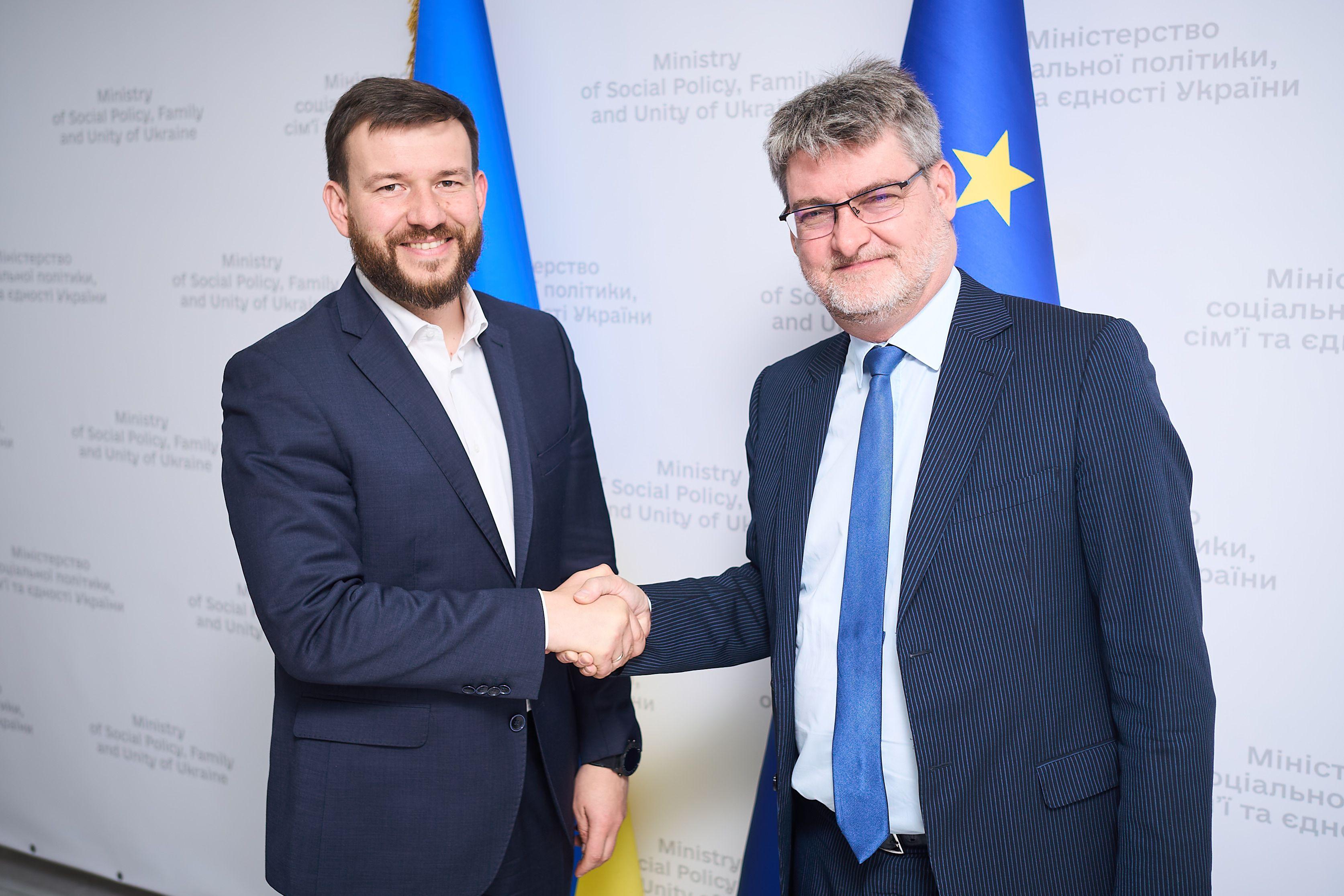 Міністр соціальної політики, сім'ї та єдності Денис Улютін провів зустріч з Надзвичайним і Повноважним Послом Французької Республіки в Україні Гаелем Вейсьєром.