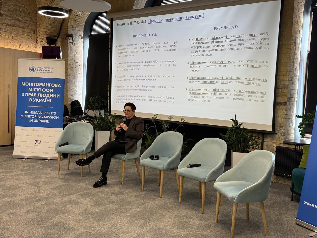 Заступниця Міністра соціальної політики, сім’ї та єдності України Тетяна Кірієнко виступила з доповіддю у рамках спільного брифінгу УВКБ ООН та Моніторингової місії ООН з прав людини в Україні для дипломатичного корпусу та громадських організацій. Спікери представили напрацювання та практичні рекомендації щодо посилення системи захисту людей старшого віку в умовах війни та вимушеного переміщення.