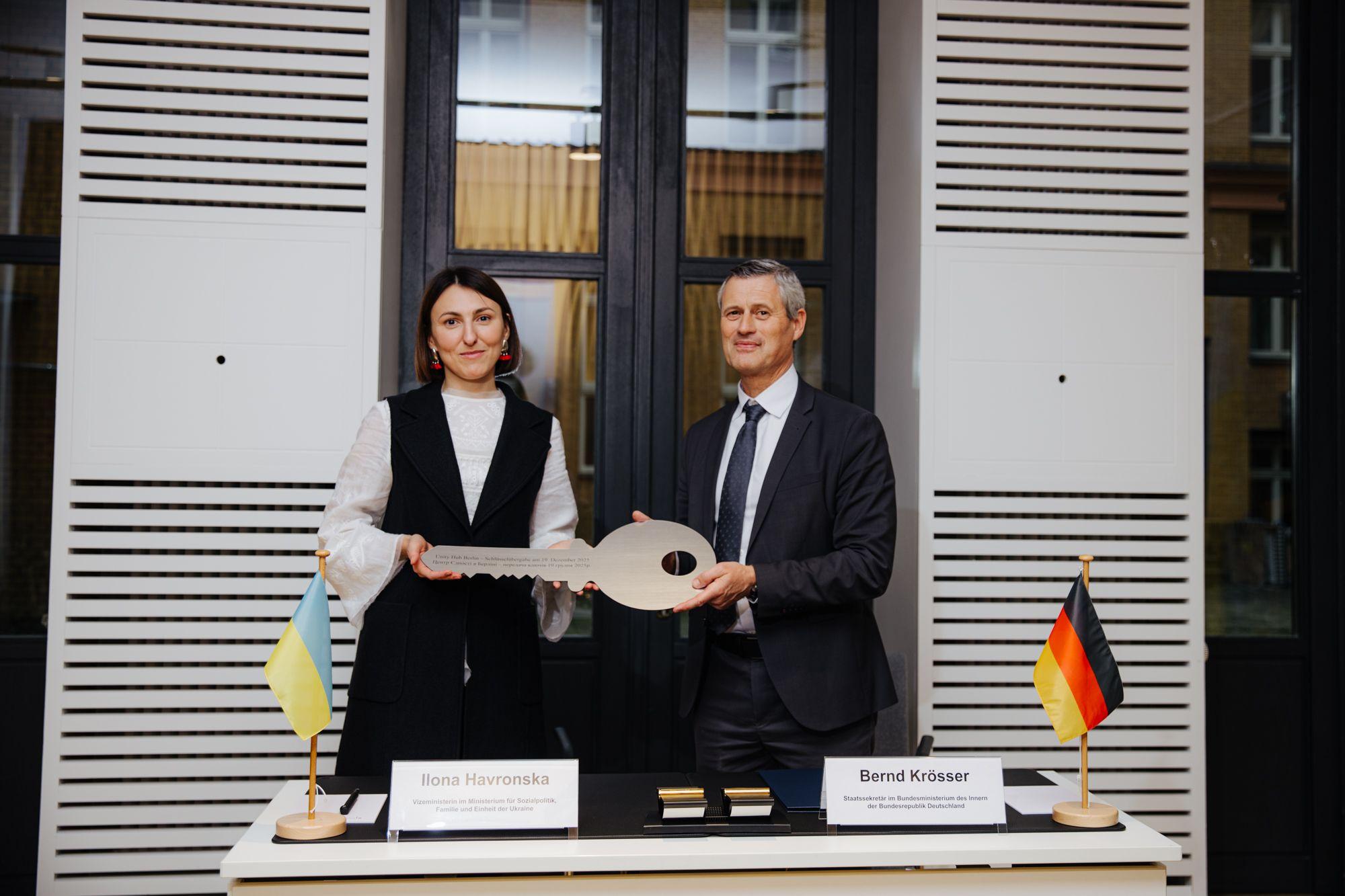 Німеччина офіційно передала в користування українській стороні приміщення, в якому незабаром розпочне роботу український Центр єдності. Подія відбулася в Берліні за участі заступниці Міністра соціальної політики, сім’ї та єдності України Ілони Гавронської, Надзвичайного і Повноважного Посла України у ФРН Олексія Макеєва та державного секретаря МВС Німеччини Бернда Крьоссера.