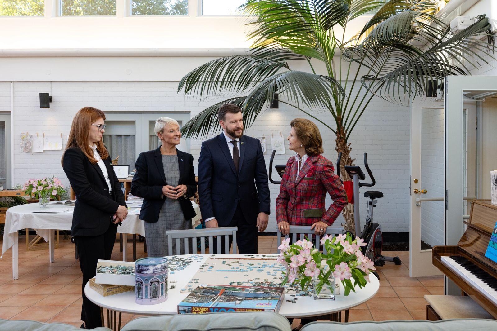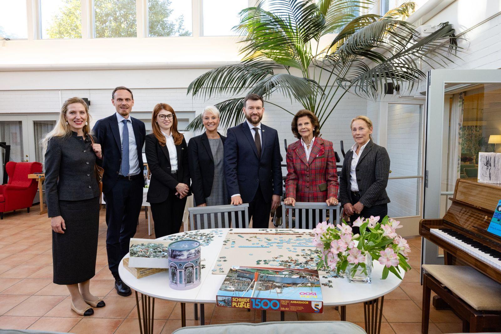 У межах робочого візиту до Швеції Міністр соціальної політики, сім’ї та єдності України Денис Улютін разом з Її Величністю Королевою Швеції Сільвією та Міністеркою у справах людей похилого віку та соціального забезпечення Швеції Анною Теньє відвідали спеціалізований заклад Stiftelsen Silviahemmet для догляду за людьми з деменцією, заснований за ініціативи Королеви Сільвії.