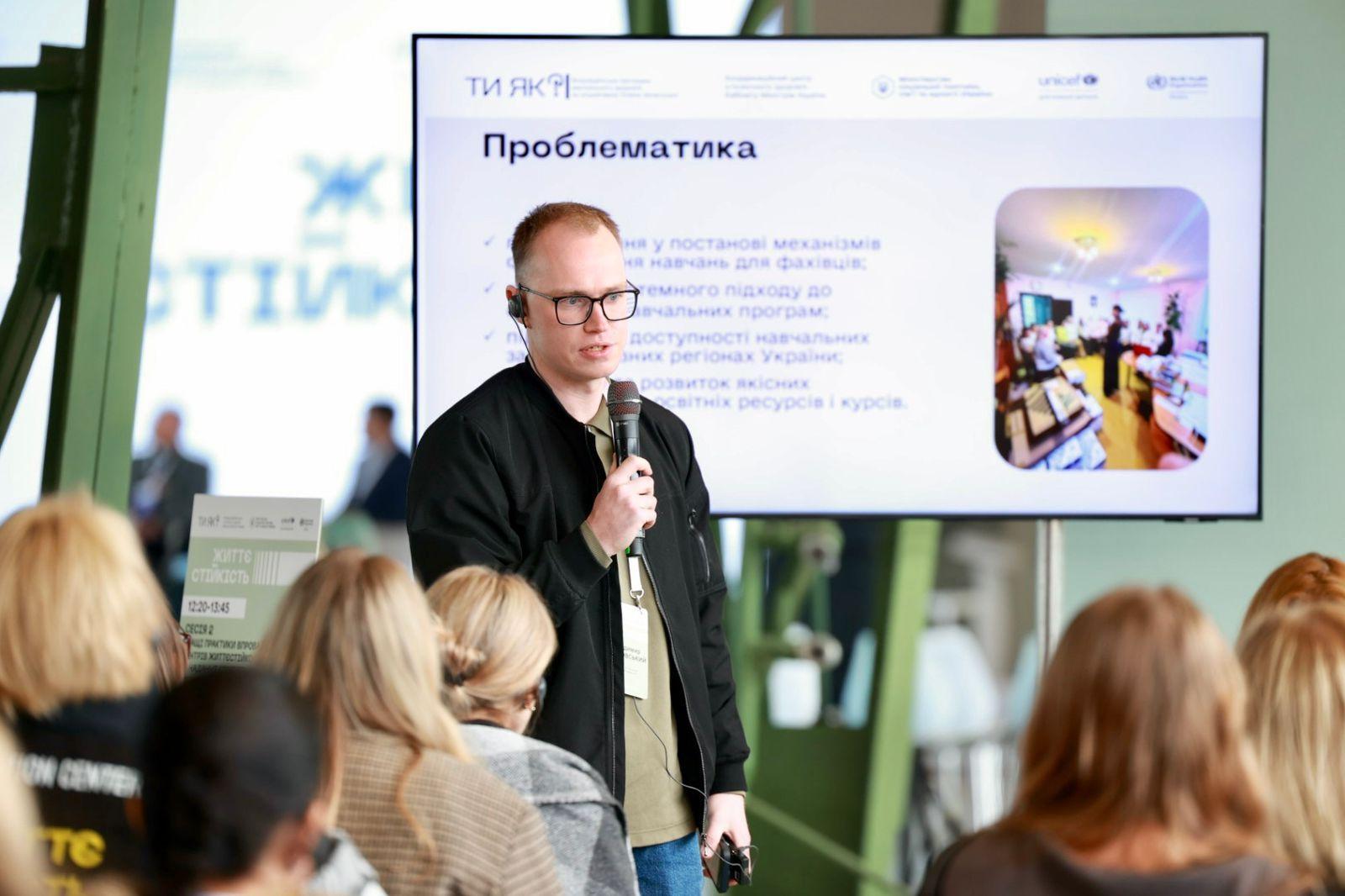 Тетяна Федоренко, спеціалістка із захисту дітей ЮНІСЕФ в Україні зазначила, що послуга життєстійкості - це послуга, яка покликана допомогти кожному і кожній у будь-якій громаді. Юнісеф розуміє, що до формування цієї послуги потрібно підходити з якістю, тому, допомагає з організацією тренінгів для фахівців ЦЖ.